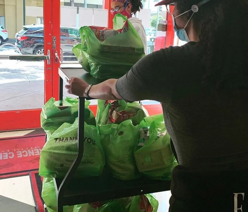 we meet to share community, fill orders for deliveries or pick up, and we take in donations and organize them. Then we are off to drop them off throughout San Francisco.